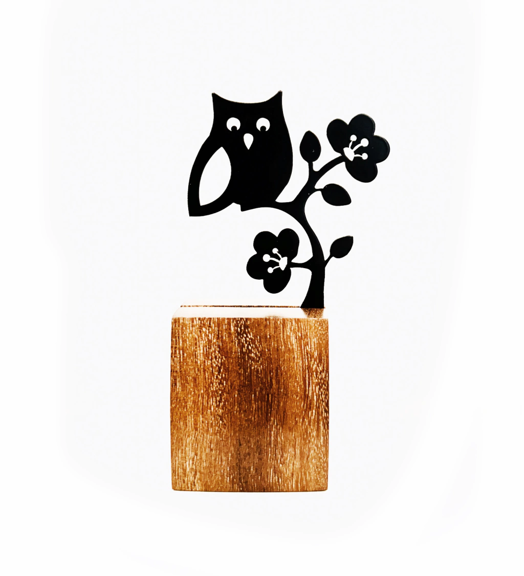 Por ser madeira natural, a base pode apresentar leves variações de cor e tamanho, tornando cada escultura ainda mais única.