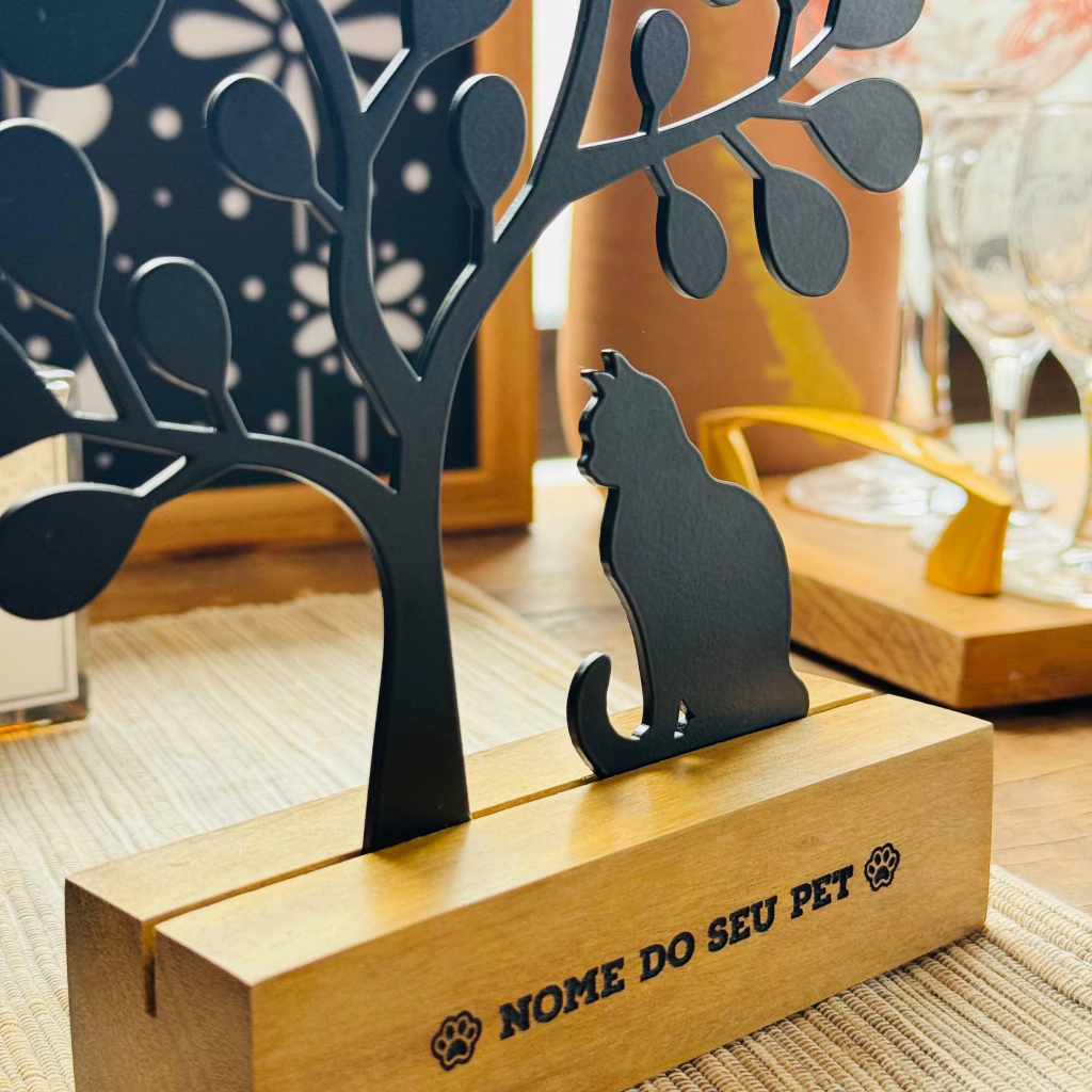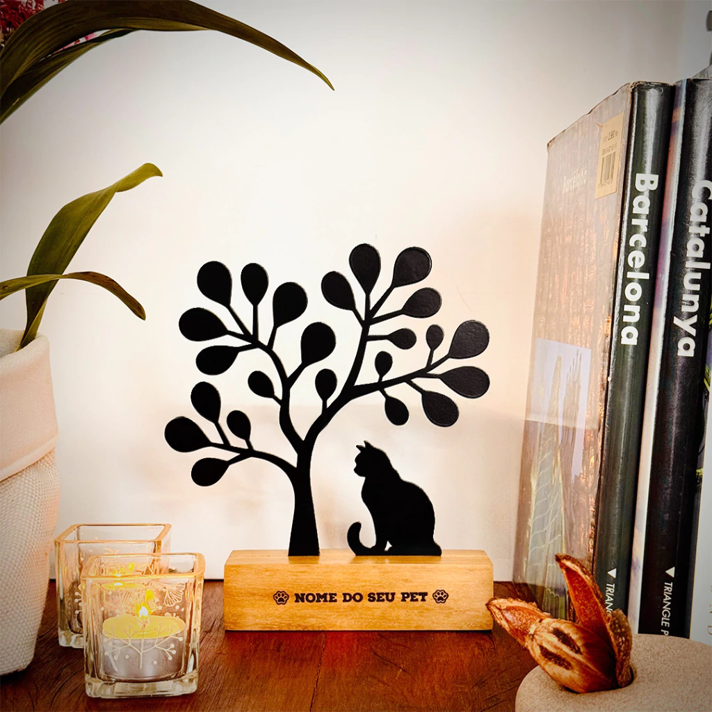 É uma escultura que simboliza a conexão especial entre humanos e seus gatos — ideal para homenagear um pet querido, decorar espaços íntimos ou presentear quem vive esse amor felino com intensidade e carinho.